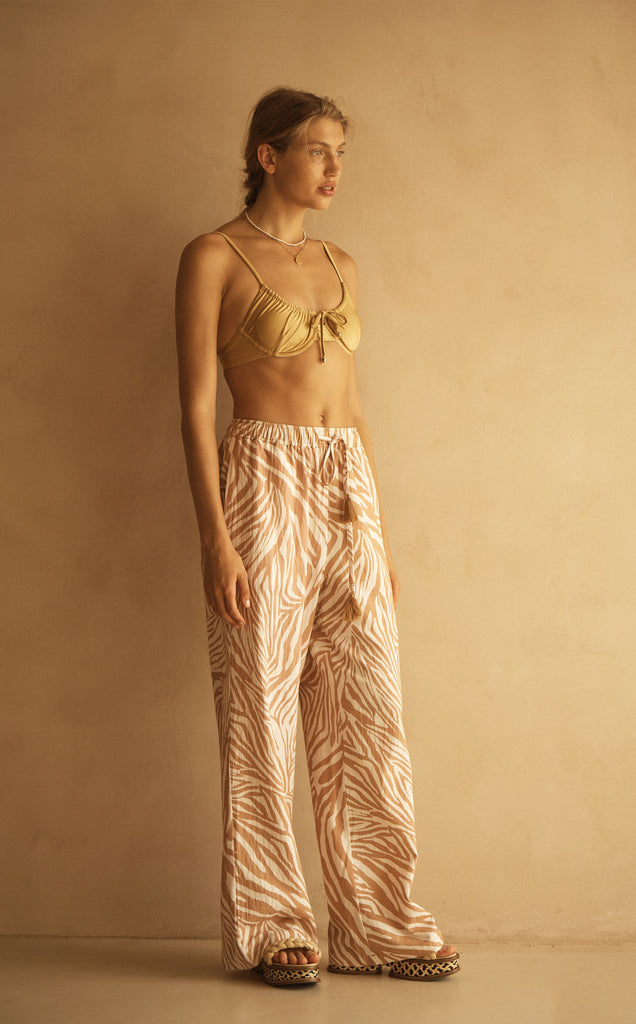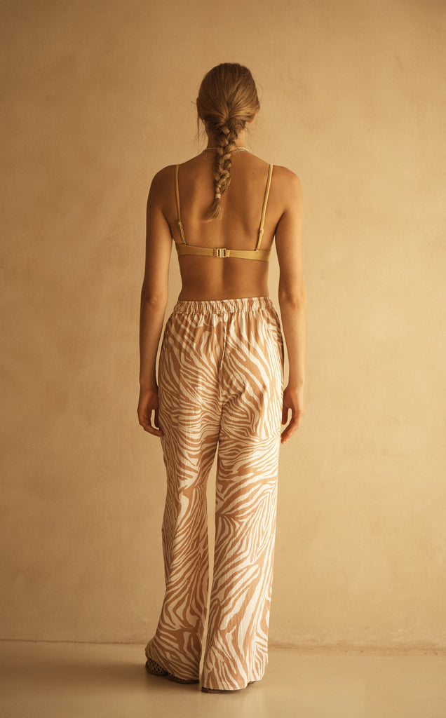 For the modern woman who embraces understated elegance, NOTAE’s sophisticated zebra-inspired pattern with caramel and coconut tones offers a muted, elevated palette that effortlessly blends luxury with the serene beauty of the coast.