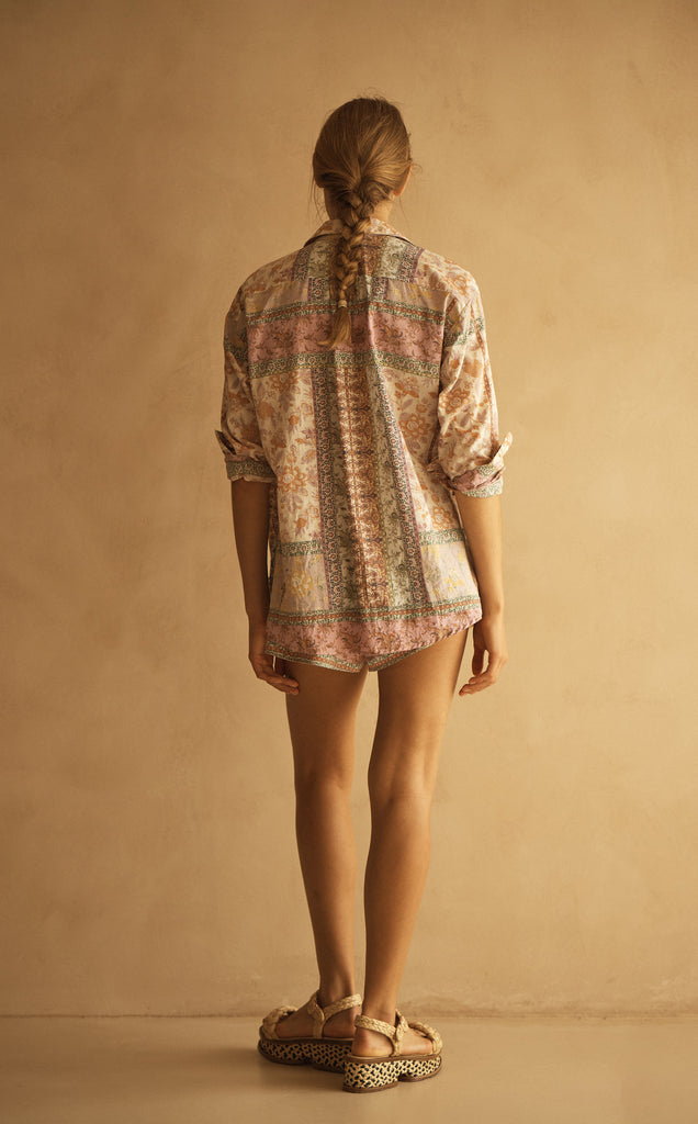 Luxe, airy and light, the Long Sleeve Shirt features a button through front, collared neckline and long cuffed sleeves. Style with matching Tasselled Drawstring Short, Bianca Gathered Wide Leg Pant or wear open over this season’s favourite swim.