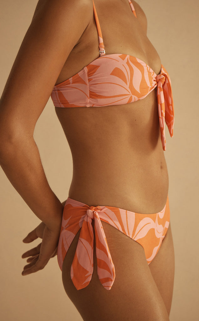 Summer awaits in the Tie Bikini Top. A fun and feminine bandeau style with functional soft tie front feature. Featuring a wide V neckline supportive soft bralette with removable cups. The Tie Bikini Top is fitted with optional removable shoulder straps. Small to medium coverage. Pair with matching Tie Bikini Pant to complete this look.