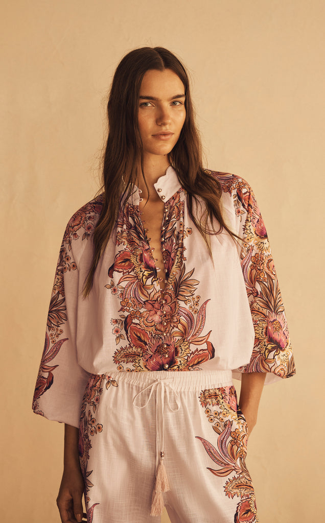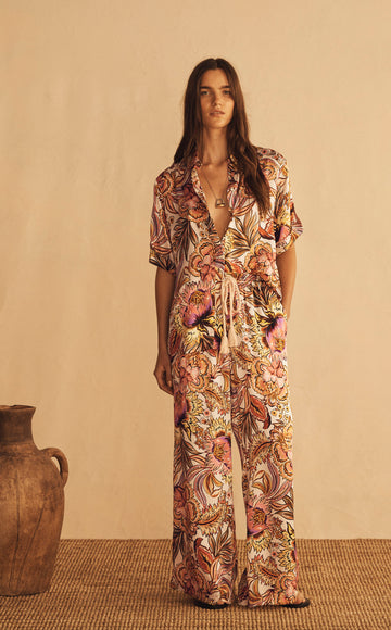 The Silk Gathered Wide Leg Pant is crafted from a luxuriously soft silk and is a universally flattering and versatile silhouette. Featuring elasticated gathered waistband, centre-front rope tie drawstring and flared wide leg design. Style with matching Silk Cuffed Short Sleeve Shirt.