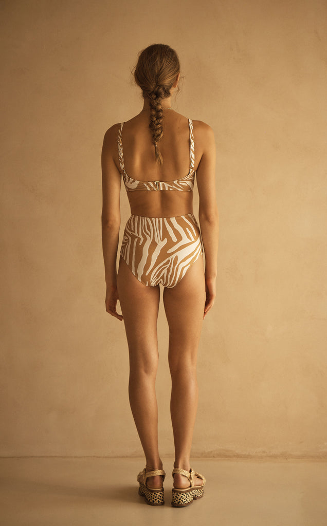 For the modern woman who embraces understated elegance, NOTAE’s sophisticated zebra-inspired pattern with caramel and coconut tones offers a muted, elevated palette that effortlessly blends luxury with the serene beauty of the coast.