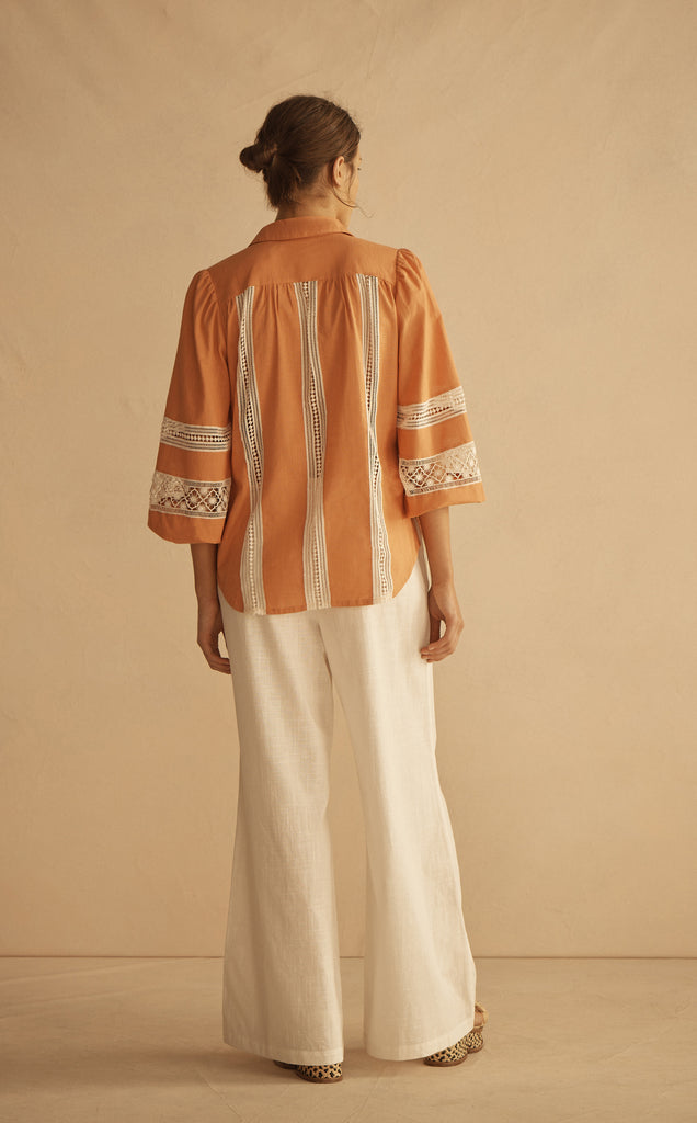 A vacation staple, the Lace Trim Billow Sleeve Blouse is a versatile foundation piece. Crafted from a lightweight, breathable cotton fabric with intricate lace trim detailing and featuring button down centre front, classic collar, and billow sleeves. Wear unbuttoned over your swimsuit, style with this season’s favourites or style with coordinating Drawstring Short.